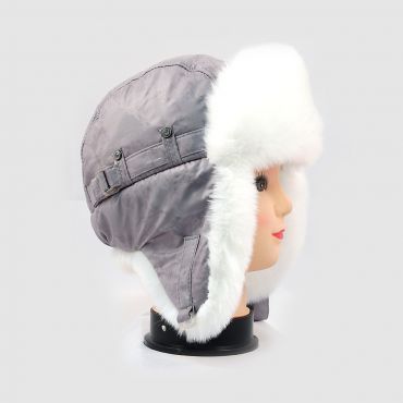 Ушанка женская от 5 до 14 лет, FreeStyle, Серо-розовая плащёвка с рисунком, Кролик белый